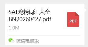 SAT词汇pdf下载,距离2026年5月SAT考试仅剩最后冲刺周期!很多同学刷题无数、技巧全会,但始终卡在阅读读不懂、选项分不清、做题速度慢的瓶颈。郭博士最新SAT鸡精词汇558!上海蒲公英教育SAT暑假课程集训,早鸟优惠!