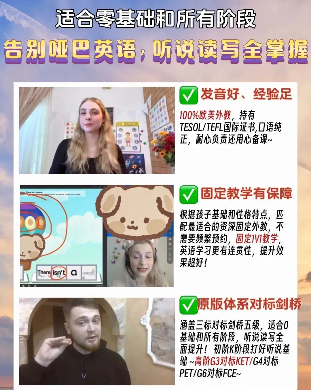 我印象最深的是刚开始上课,老师发现孩子不太敢说完整句子,就通过游戏引导拆分表达,慢慢拼接成长句。课后孩子主动说“我下节课还想上这个老师的课”。