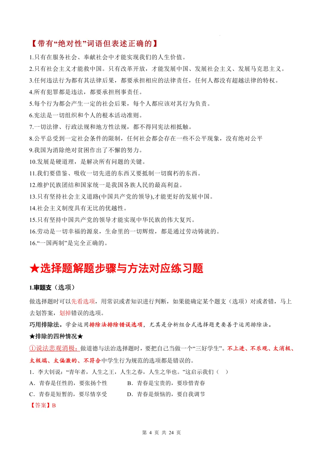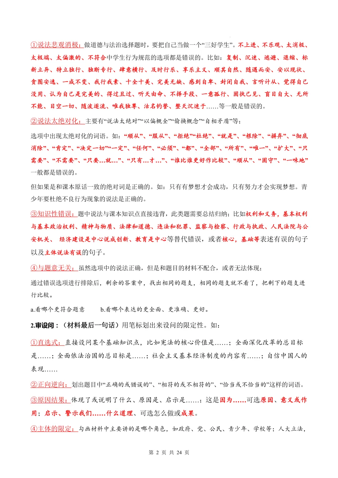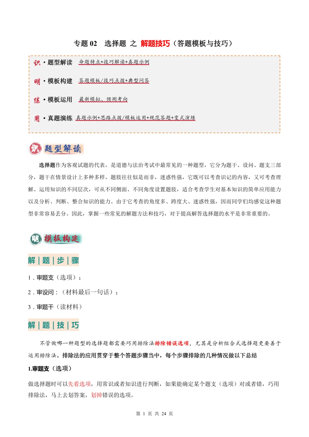 今天给大家带来了中考道法选择题之解题技巧—答题模板与技巧(解析版+空白版)获取完整电子版请下拉至文末