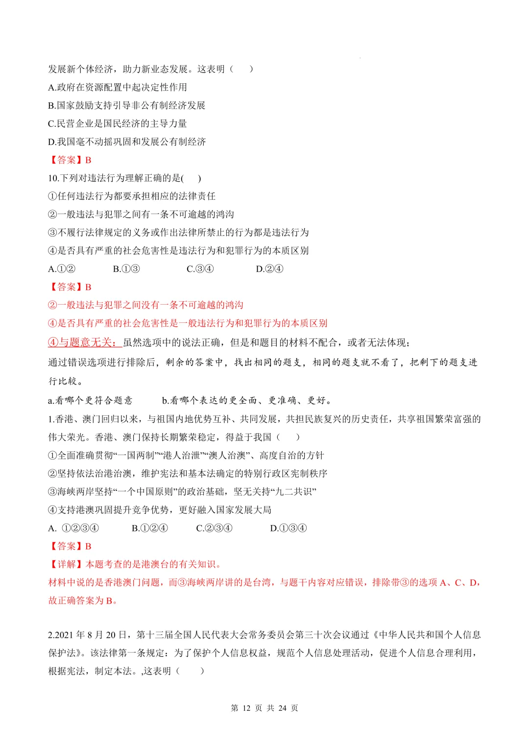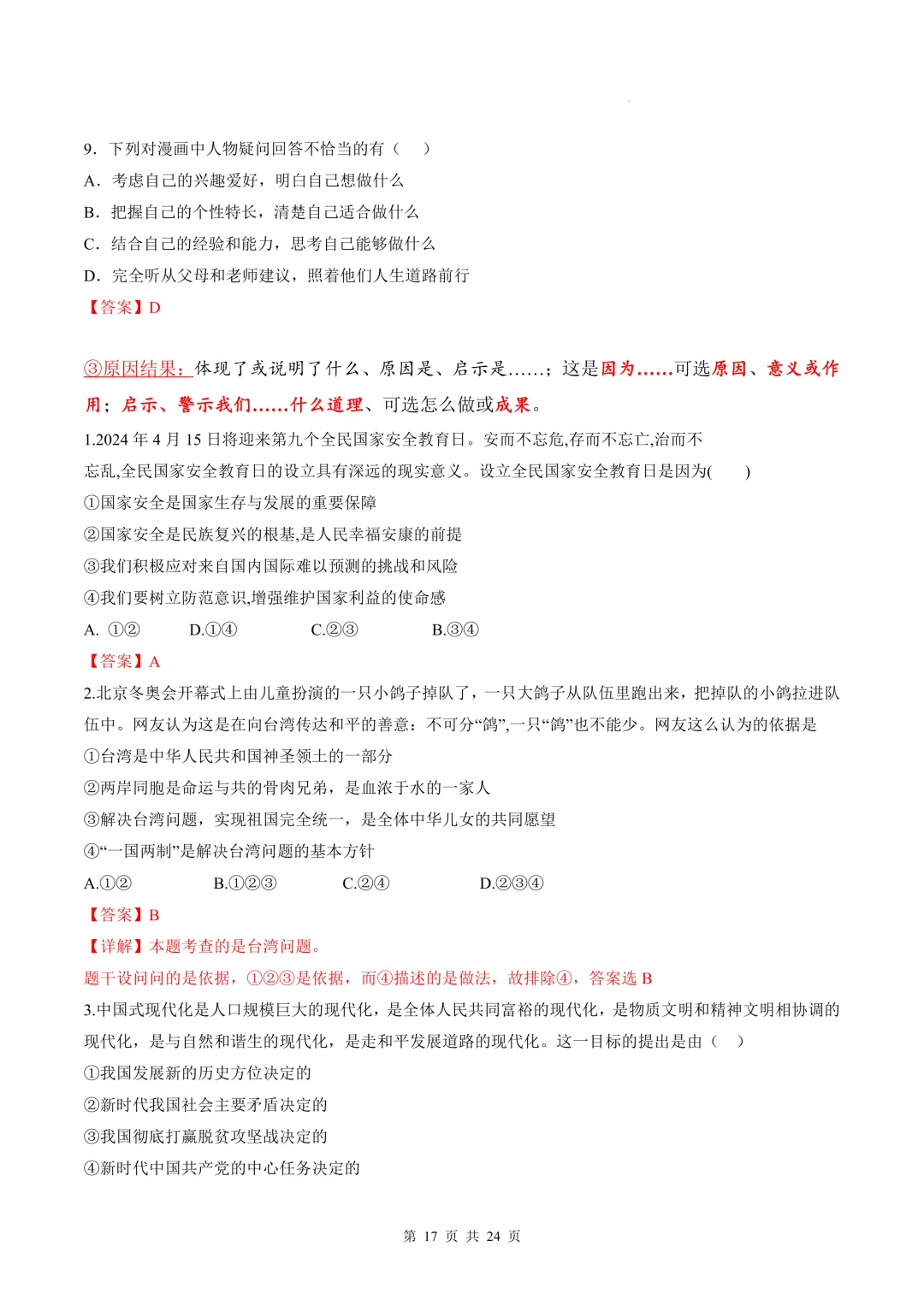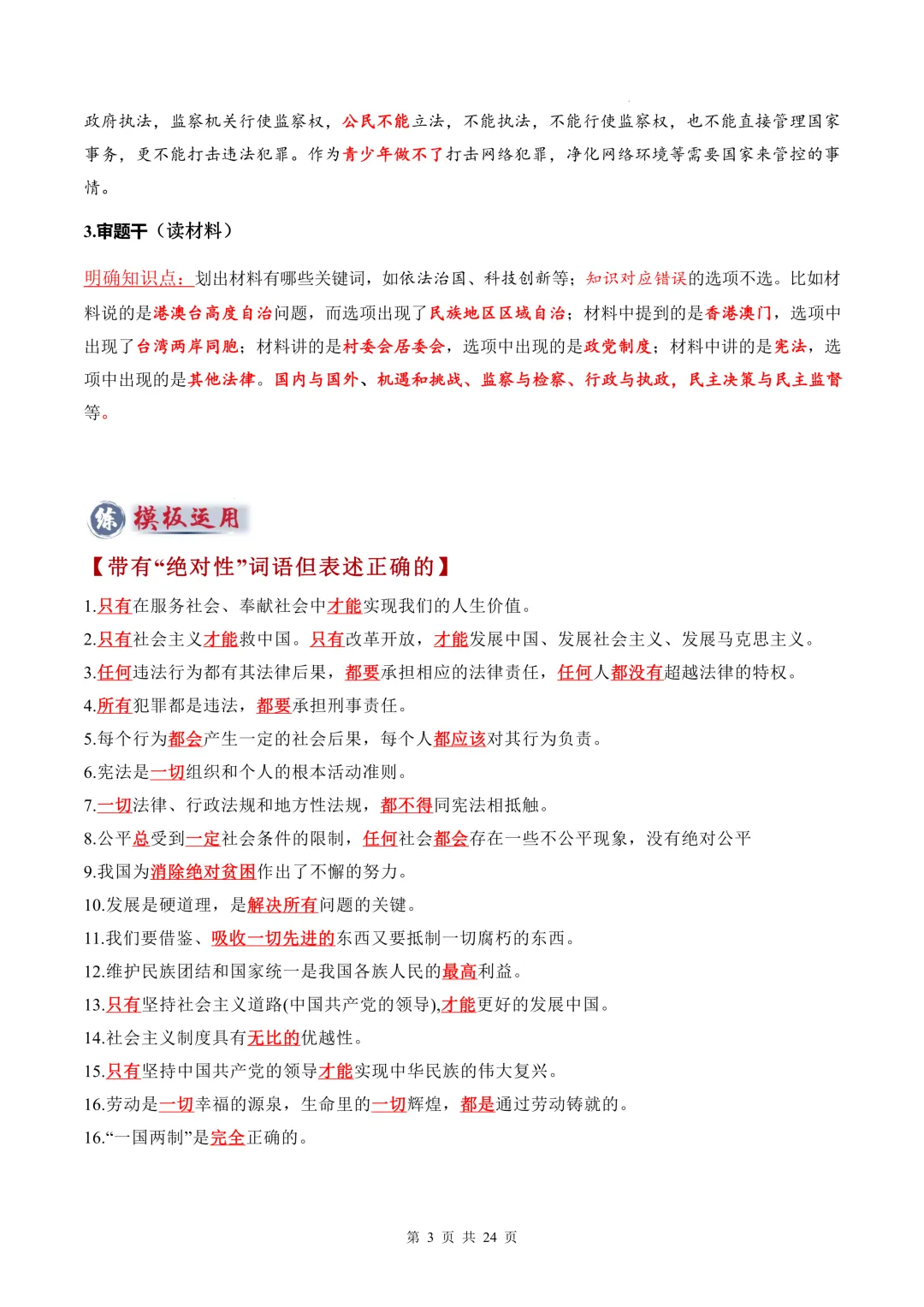 今天给大家带来了中考道法选择题之解题技巧—答题模板与技巧(解析版+空白版)获取完整电子版请下拉至文末
