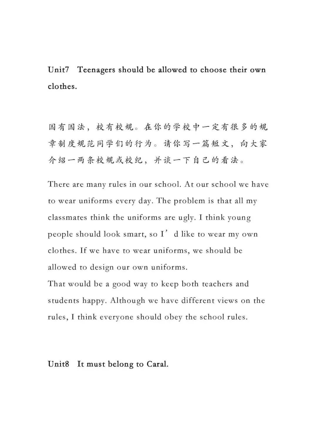 九年级英语全册单元话题作文范文