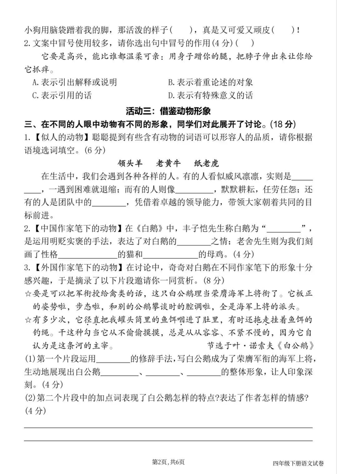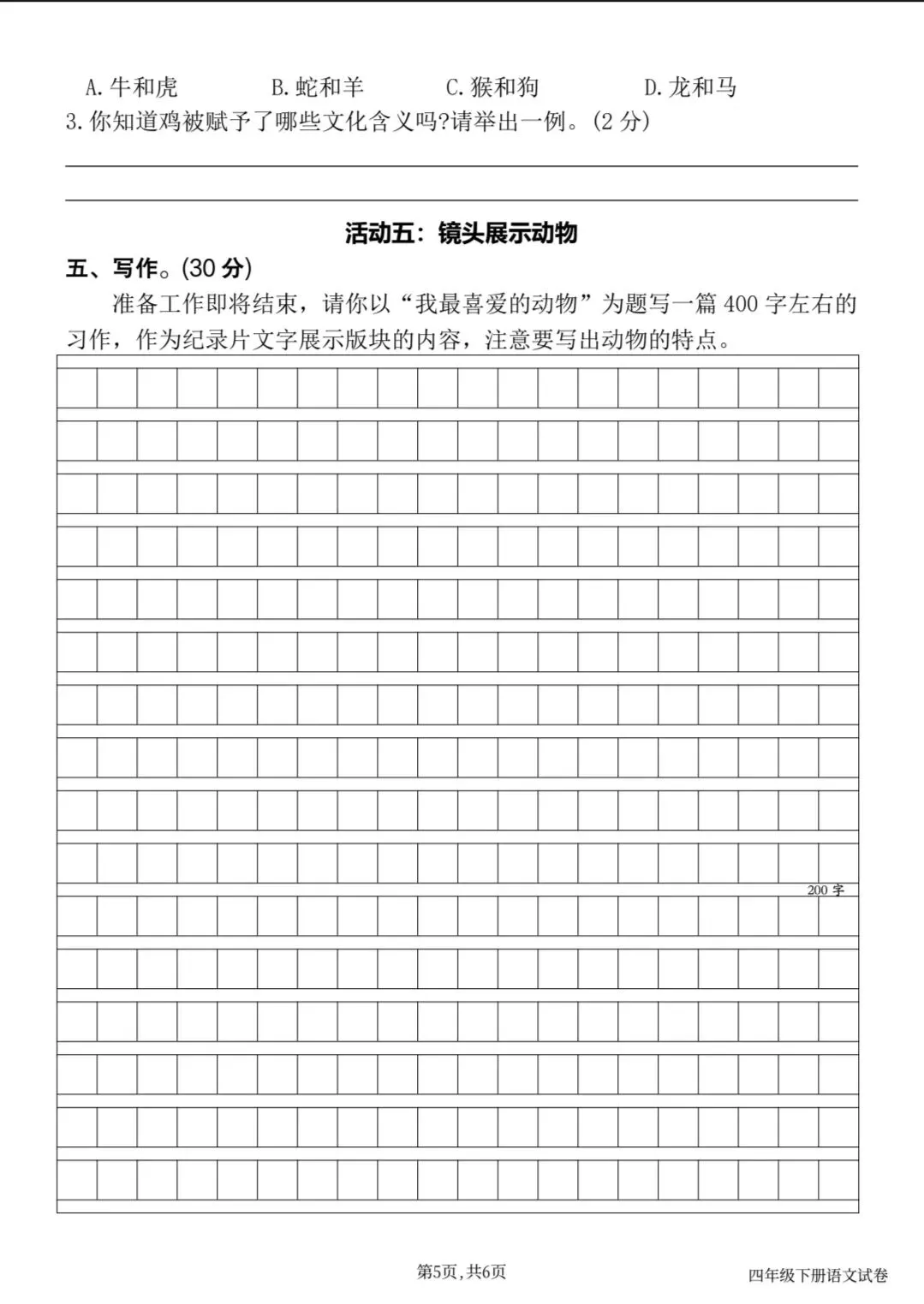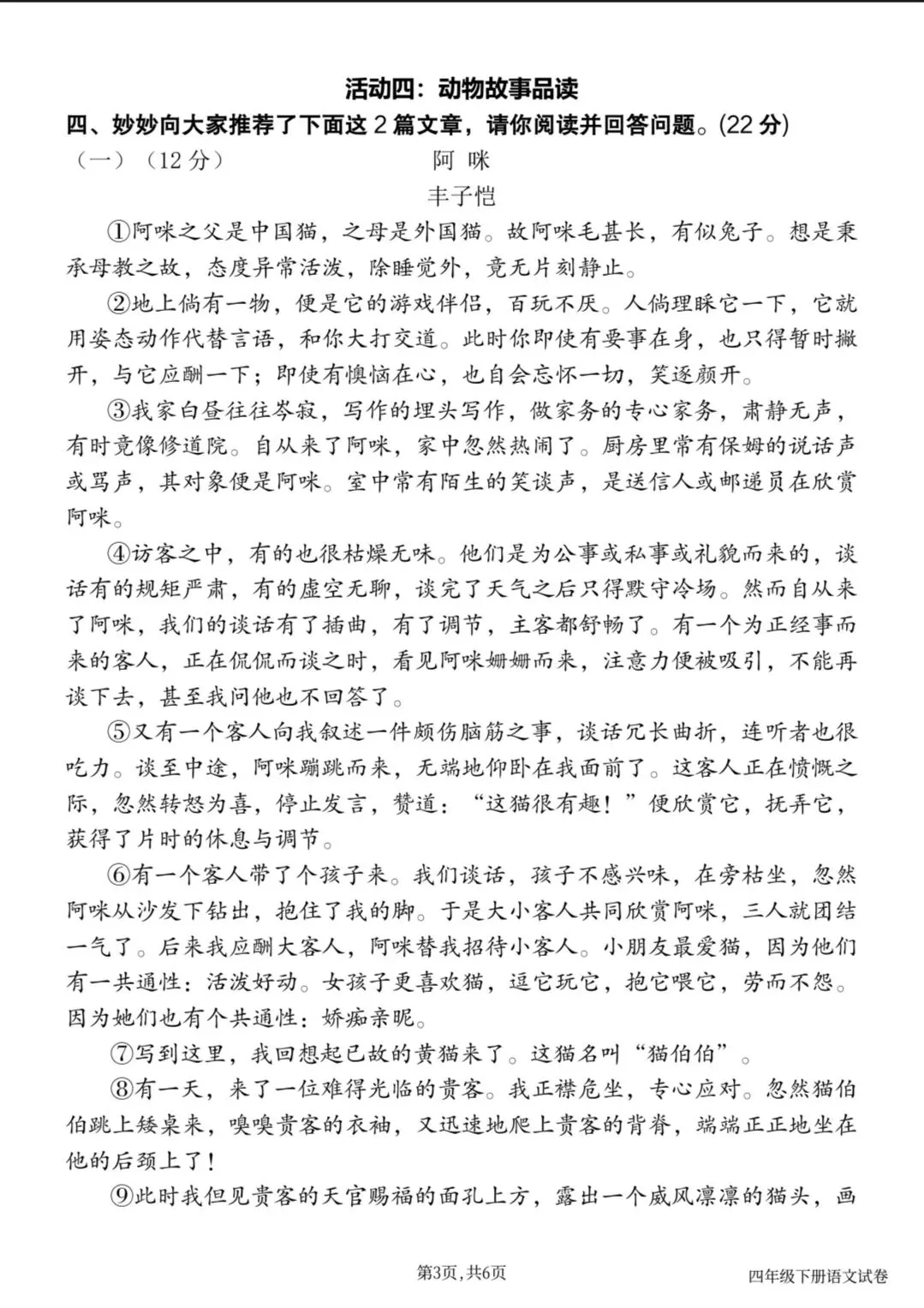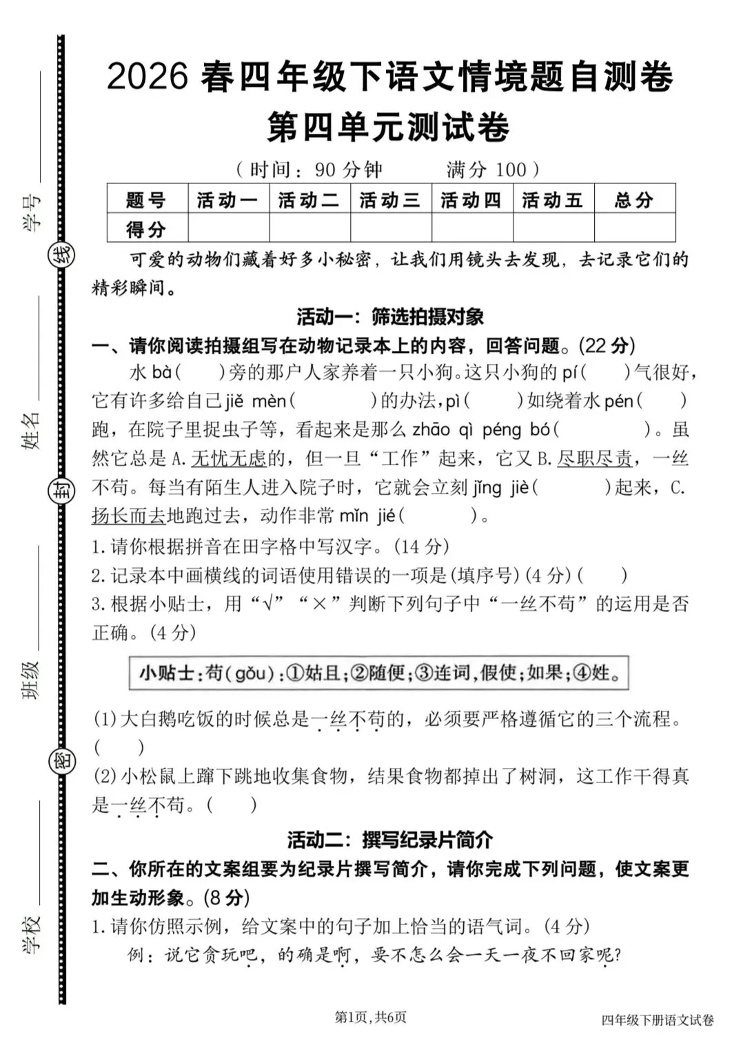 部编版四年级语文下册第四单元检测卷(可打印)以下是部编版四年级语文下册第四单元检测卷,包含参考答案!若需PDF完整版请私聊客服!为防止错过“JJ语文备课室”的推送,请【星标】或文末点【分享】【赞】【在看】!谢谢!