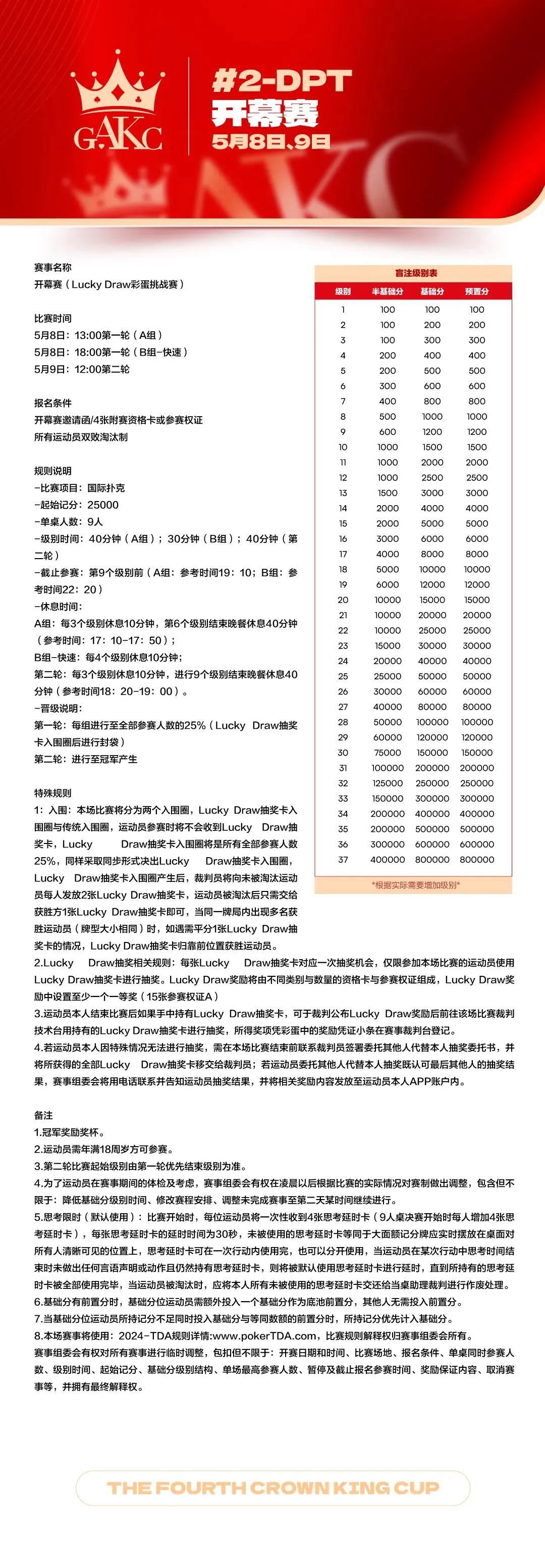 开幕赛:5月8日13:00、18:00分两组开赛,采用Lucky Draw形式,开局即精彩。