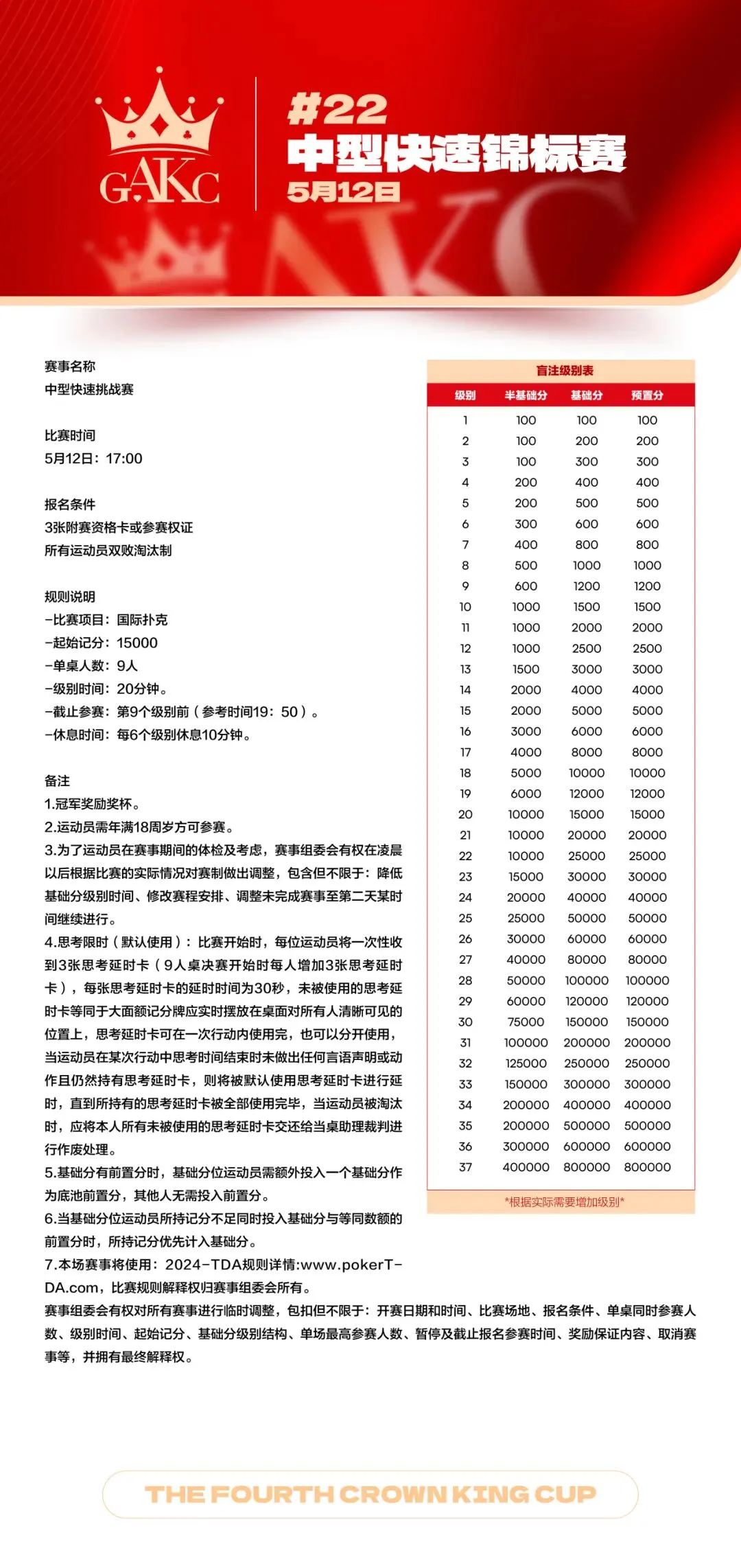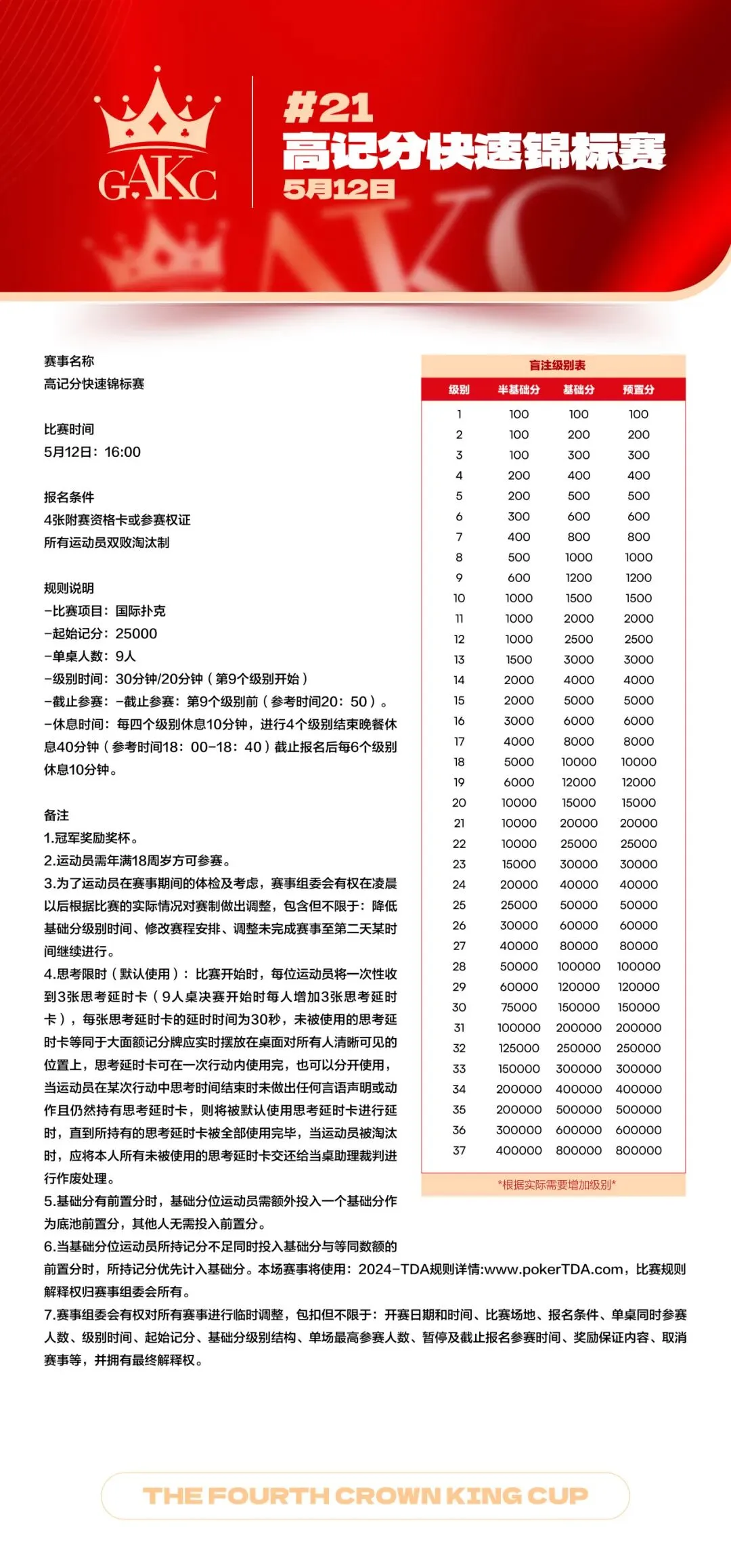 主赛·GAKC皇冠杯:5月9日-11日A/B/C/(快速)D组,5月12日第二轮、5月13日第三轮,向最终荣耀发起冲刺。