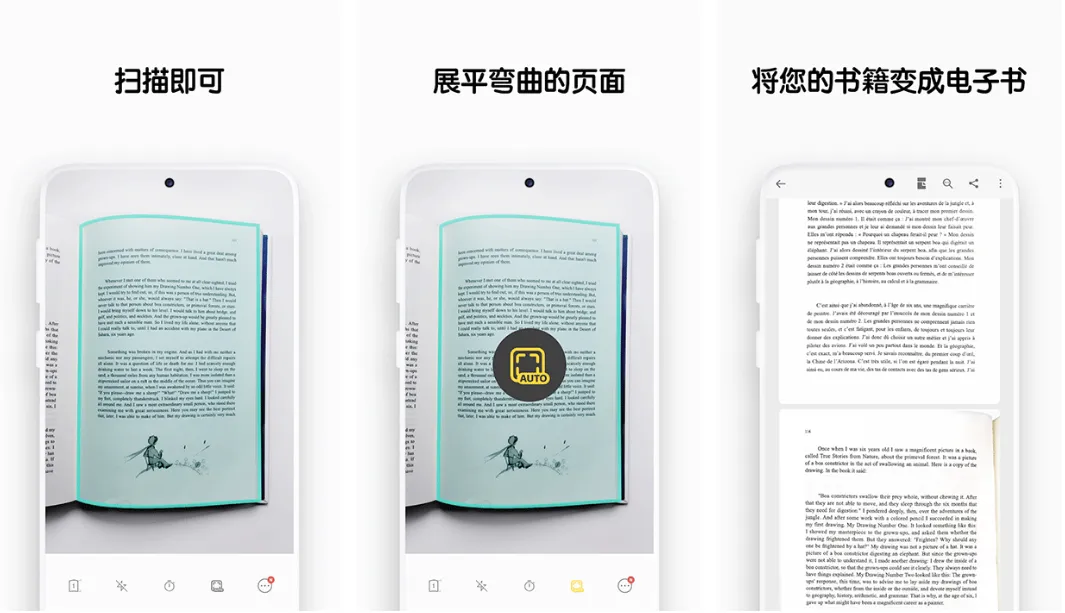 扫描时扶着书籍的手指能神奇的去除掉,支持OCR文字识别,并可导出PDF文档!