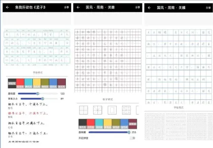 它支持强大的字帖编辑功能,包括:格子样式、字体样式、字帖模式。