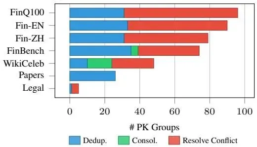 | 🔄 协调代理分析 调和代理运行效率非常高,平均每个主键组仅需 1.28 �迭代即可完成数据调和工作。对于大型金融语料库,主要引发必须解决的冲突,而多文档传记语料库更经常需要跨部分重叠证据的合并。 |