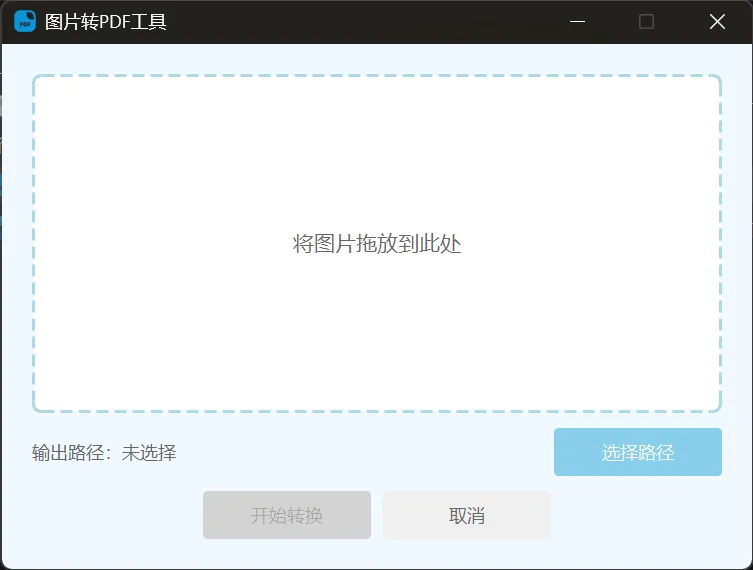 png2pdf是绿色软件,下载下来解压就能用,连安装都不需要。双击打开,一个简洁的小窗口就出来了。没有广告,没有弹窗,没有让你注册登录的提示,干干净净,就一个空窗口等着你拖图片进去。