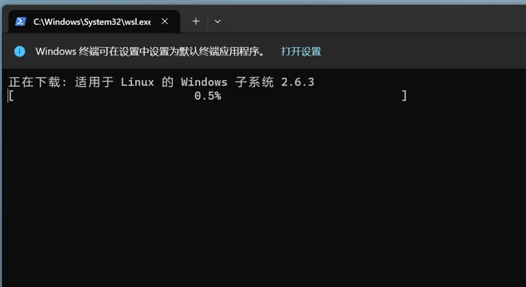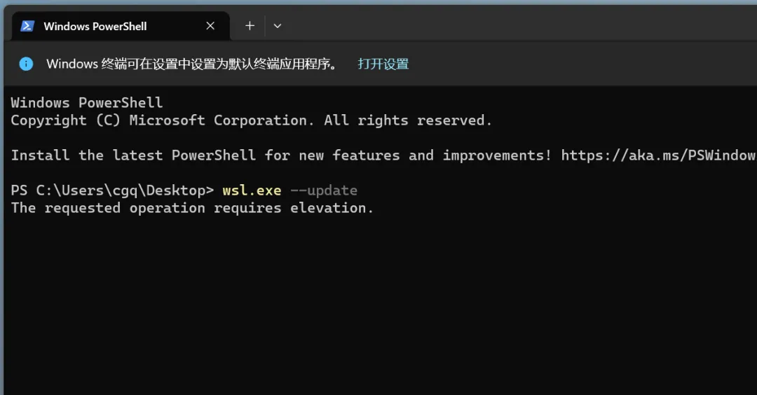 我们按照终端的提示执行wsl更新命令进行下载。中间会提示权限,点击“是”即可