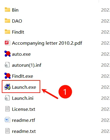 1. 首先安装Findit,打开安装包中的【1】ICSD-2010文件夹,文件夹内部文件如下,双击Launch.exe开始安装: