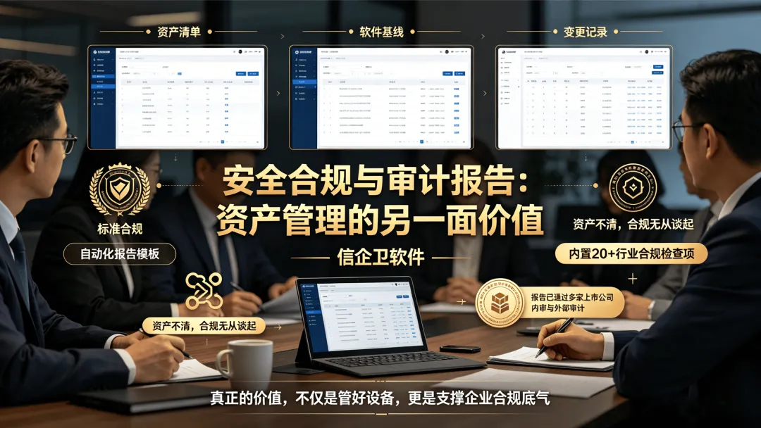 信企卫把资产发现、变更监控、安全合规、审计报告整合在一套平台里,让企业对自身IT资产的掌控程度,从"大概知道"提升到了"精确掌握"。这种掌控力,是控制采购成本的基础,也是建立终端安全防线的前提条件。资产管理和安全管理从来都是一体的——你连公司有多少台设备、每台设备在做什么都搞不清楚,又怎么谈终端安全?把资产底座打扎实,才是企业IT治理真正应该有的起点。