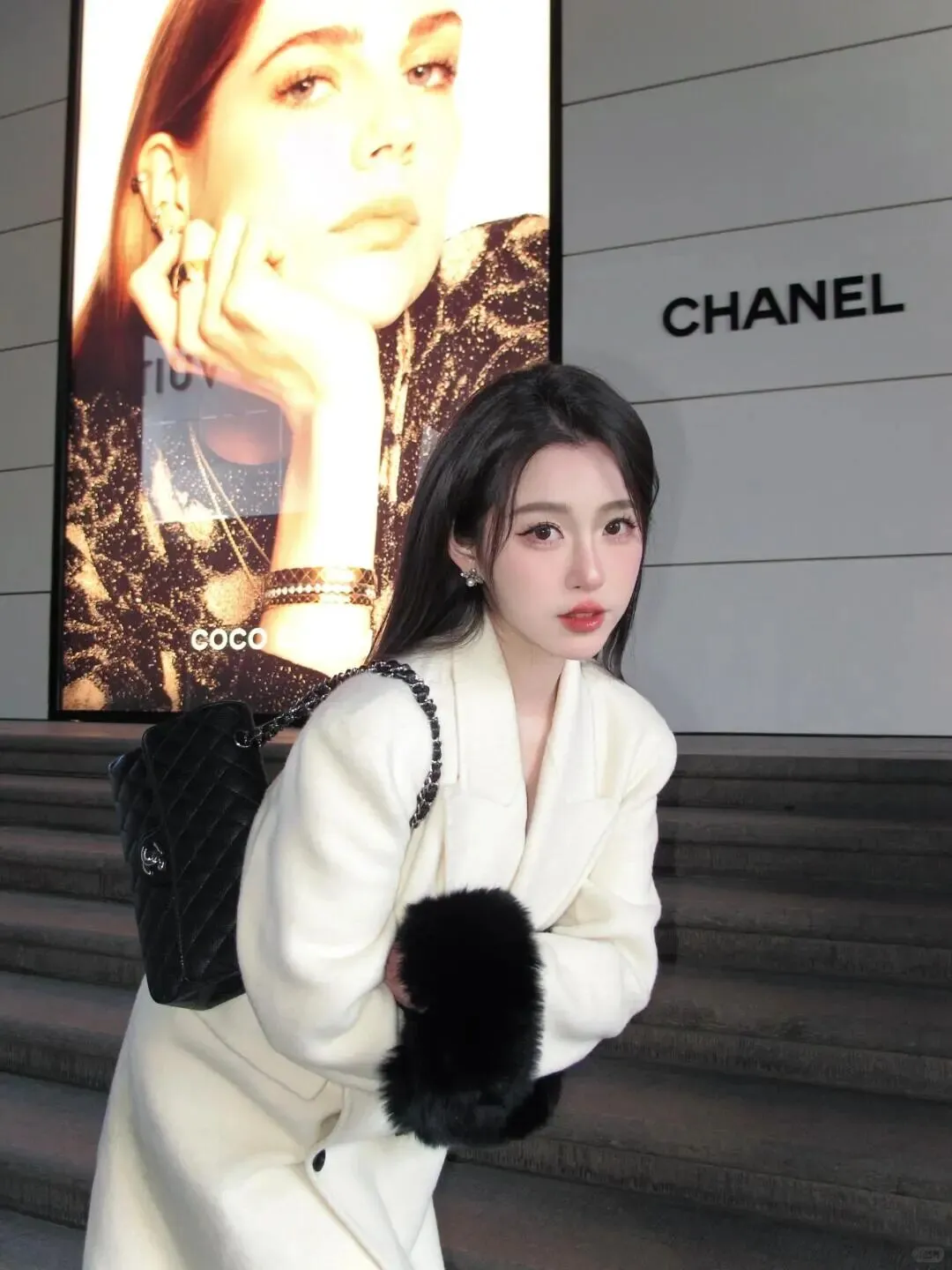 路过繁华商圈或者奢侈品店门口,不要匆匆走过,那里就是最好的背景板。就像站在香奈儿海报前那样,穿一条质感好的白色长裙,V 领设计能拉长颈部线条,显得脸小。姿势不需要太夸张,身体微微侧向镜头,一只手轻轻搭在包包链条上,另一只手自然下垂或整理头发。眼神不要直勾勾盯着镜头,可以看镜头下方一点,或者看向远方,营造出一种不经意间被捕捉的优雅感。光线如果是傍晚的暖光,打在脸上会非常柔和,整个人都在发光,温柔又有气质,女神范儿瞬间拉满。