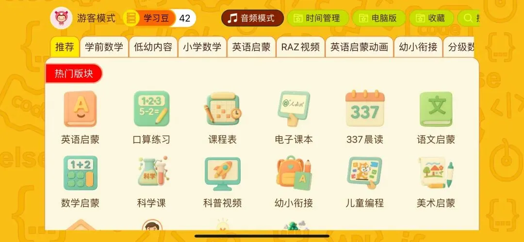 现在内容倒是多了,又增加了数学 国际象棋和音乐,给娃拿着搞个入门倒是也还OK。