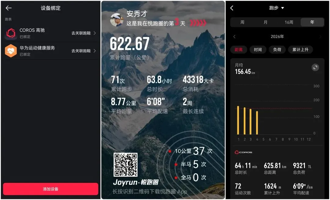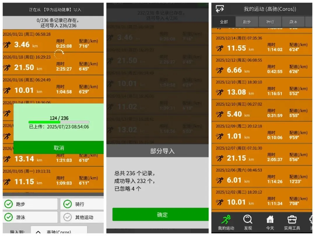 华为运动健康里秀才总运动量2000多公里,其中2025年1765.71公里,2024年375.86公里,同步至高驰App后,仅可见2025年所有运动数据为2040公里,包含了骑行的一些数据,丢失了部分数据,大部分是准确的。