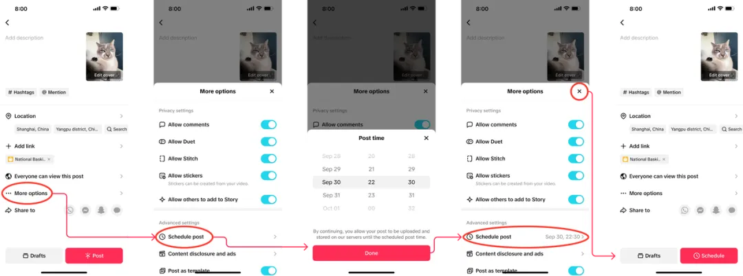 定时发布功能支持自主设定视频发布的具体日期和时间,帮助您有计划的发布内容、节省时间,在短视频内容发布管理上有更多的灵活性。主要功能