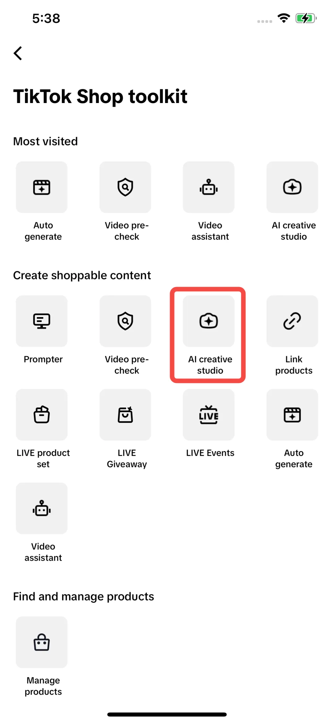入口:TikTok APP -> TTS创作中心 -> TTS工具包 -> AI creative studio