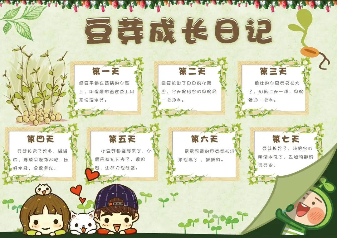 【16款】植物生长手抄报模板可打印!幼儿园|中小学生观察手帐图画日记