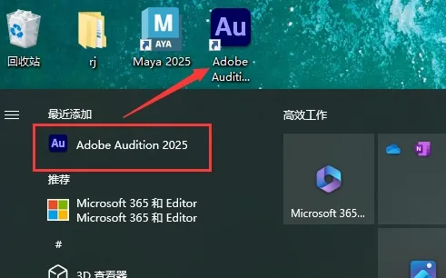 7. 在电脑的开始菜单中找到“Adobe Audition 2025”软件,直接拖动到桌面上以创建快捷方式。