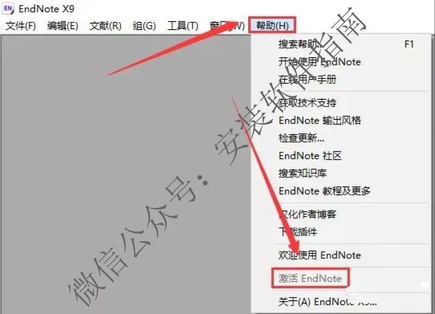 25.点【帮助】,看到【激活EndNote】变成灰白色,说明破解成功