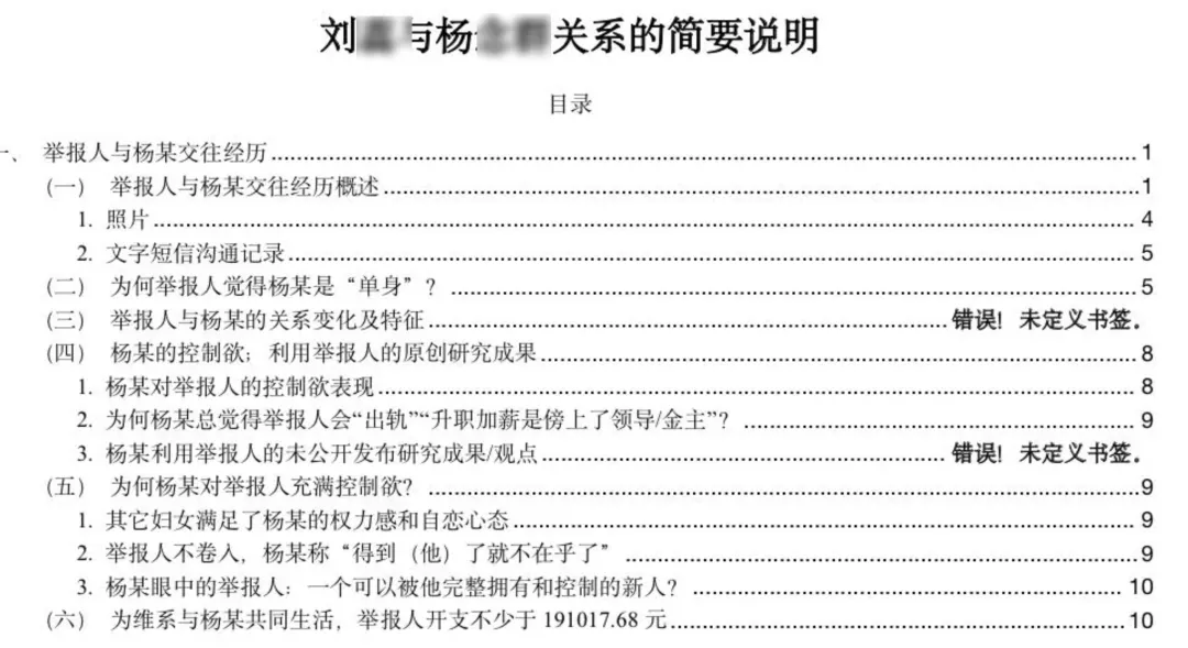 吃瓜!人大Y教授的PDF一份73页的PDF,封面做得跟学术专著似的。标题旁边印着几个字:名人之后,海淀区草,中国学界的布拉德·皮特。这位海淀区草,自称江湖混久的杨少,就是人大的杨教授。整件事的核心不复杂,20多岁的女研究生刘同学,在疫情期间通过网课接触一位年近六十的杨教授。从邮件到微信,从线上交流到线下见面,很快滑入不可描述的关系。谈着谈着发现,杨教授背后藏着长达20年的多角关系网,清华的女副教授、社科院的副研究员,全在名单上。刘同学要求分手,要求退还花掉的20多万。杨教授报警说她敲诈。警方看了说,走合法途径举报吧。说实话,这PDF读起来相当折磨人。时间线乱成一锅粥,文字东拉西扯。刘同学想读杨教授的博士,杨教授拒绝了,理由是你不是读博的材料。看完这封举报信,我居然有点理解杨教授的判断了,这文字功底,确实不太行。2020年网课期间,刘同学旁听杨教授的课。两人邮件聊文艺作品,杨教授主动把手机号发过去。加上微信,开始互发生活照。疫情缓和后,第一次办公室见面,就谈情说爱加亲密接触。那年杨教授57岁,刘同学按推算25岁左右,但她自己短信里写实际年龄21岁。刘同学当面问,你结婚了没?杨教授沉默。她觉得沉默就是没有,决定去爱护教授脆弱的内心。后面的事开始变得离谱。直到刘同学发现杨教授邮箱可以自动登录,翻出他跟颜教授、沈副研究员的暧昧邮件,才出了大事。据举报信,沈曾是杨的女博士生,清华颜教师是多年前开会认识的,双方其实都有家庭。