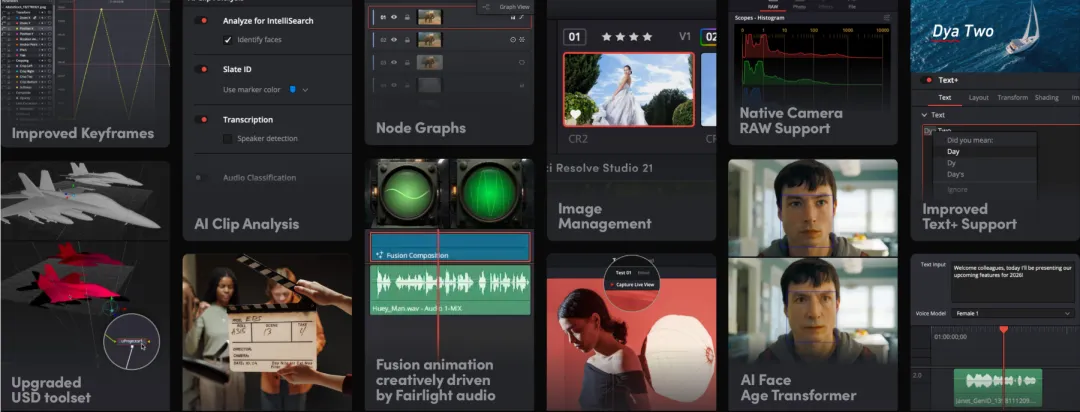 > 免费版包含完整的剪辑、调色、音频后期、特效合成