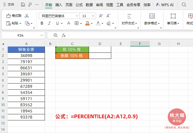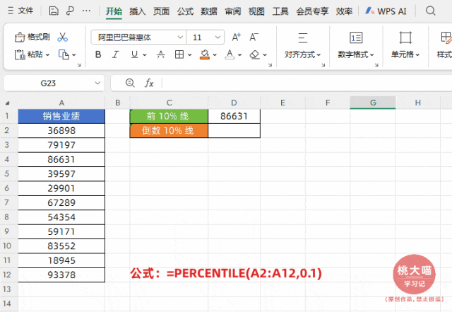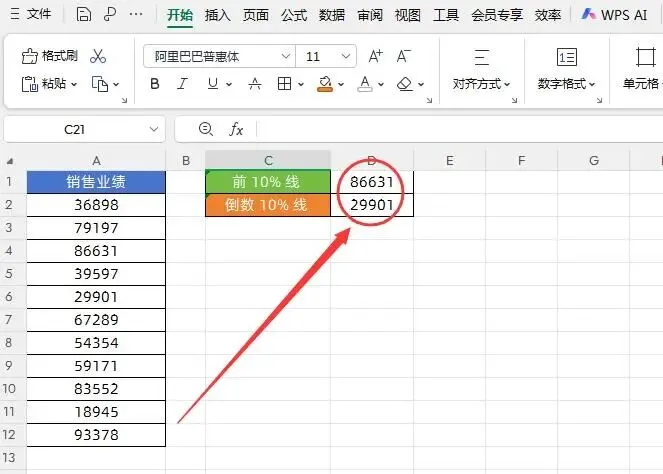如下图所示,根据员工销售业绩要分别给“头部 10% 销售人员”特别奖励,给“尾部 10%”业绩预警,需知道这两个业绩值。