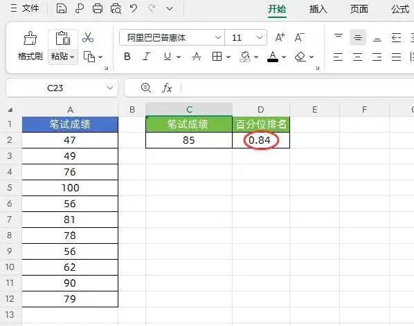 结果≈ 0.84(即84%分位,说明高于84%的人)。