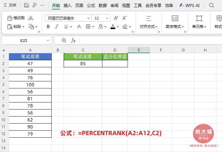 简单来说,PERCENTILE用于计算“分位数”,即给定一个百分比,找出对应的数值;而PERCENTRANK 则用于计算“百分等级”,即给定一个数值,找出它在数据集中的百分比排位。