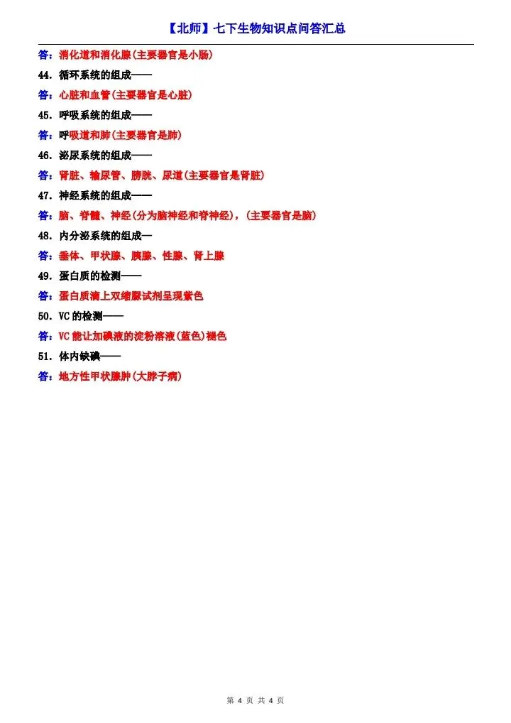 2025-2026学年春季北师版生物七年级下册《知识点问答汇总》,含答案和解析,电子版可下载,可打印。这套七年级下册生物知识点总结,帮助孩子复习重点知识,夯实基础。