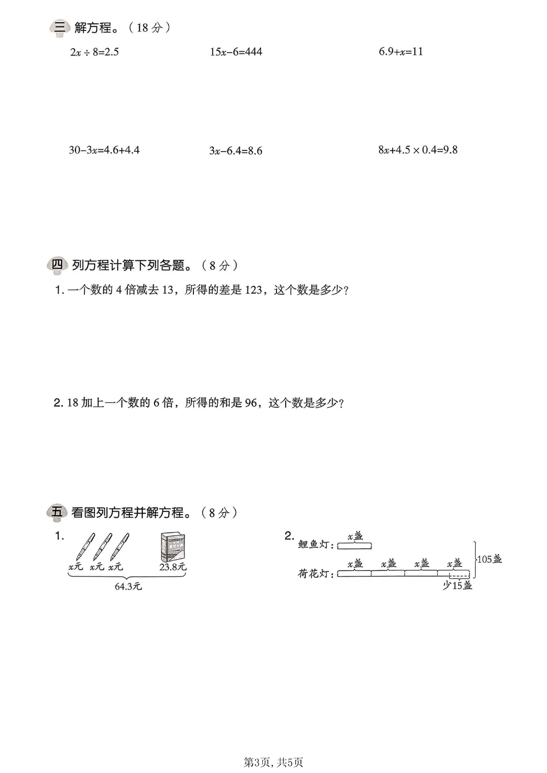 今天给大家分享的是:四年级下册数学【北师大版】【第五单元测试卷3套带答案】丨完整高清电子版可打印