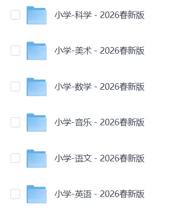 【2026春新版】人教统编版小学全科(高清课本教材)1-6年级上下册(完整)温馨提示:长按链接“搜一搜“即可打开,文末可快捷跳转⬇️合集链接:小学全科电子课本大全https://pan.quark.cn/s/3987d0d9d4a2文件预览:学段学科年份初中道法2026 春新版初中地理2026 春新版初中化学2026 春新版初中科学2026 春新版初中历史2026 春新版初中美术2026 春新版初中生物2026 春新版初中数学2026 春新版初中物理2026 春新版初中音乐2026 春新版初中语文2026 春新版初中英语2026 春新版小学科学2026 春新版小学美术2026 春新版小学数学2026 春新版小学音乐2026 春新版小学语文2026 春新版小学英语2026 春新版因篇幅有限,只展示部分资料截图…每学期上千份资料持续更新,包含1-6年级语文、数学、英语、科学。都可以免费下载,永久有效,需要的家长老师直接领取就行!▍素材来源:网络,转载请注明▍声明:我们尊重原创,版权归原作者及原出处所有,如侵权请联系我们处理。