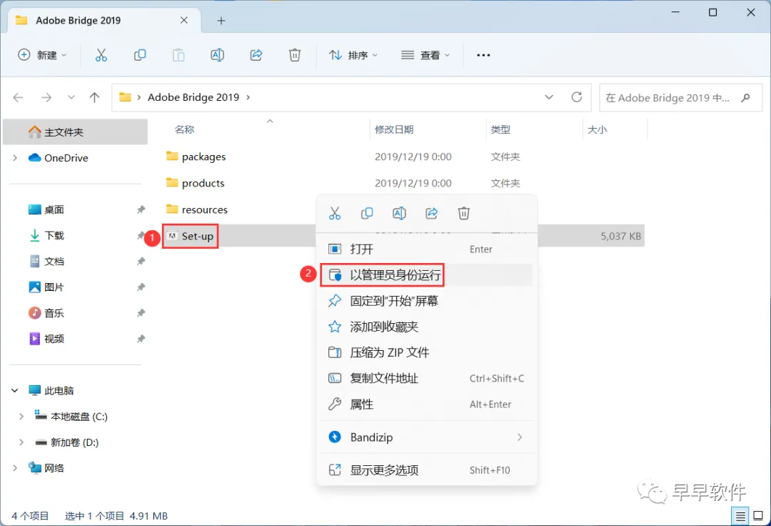 1、下载Adobe Bridge 2019软件安装包到电脑上,右键选择【解压到Adobe Bridge 2019\】