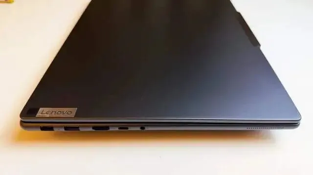 圆弧过渡元素设计。拆包装取真机,这台YogaPro16s是二手机,银灰色,八新,前主人使用保养较好。机身外壳金属有轻微划痕,中框区域全部是圆弧过渡的设计样式,配合17.9mm的厚度与2.18千克的重量,足够薄但不轻巧,单手握持有一定压力。平放在桌面上,机器的底壳固定牢固,且抬升的高度差,便于底壳栅格纹处进气,转轴处的出风口散热,加上散热风扇和铜管组合起来,效能很不错。在插电情况下使用,睿频过程里,风扇运行正常,机器综合调度流畅。