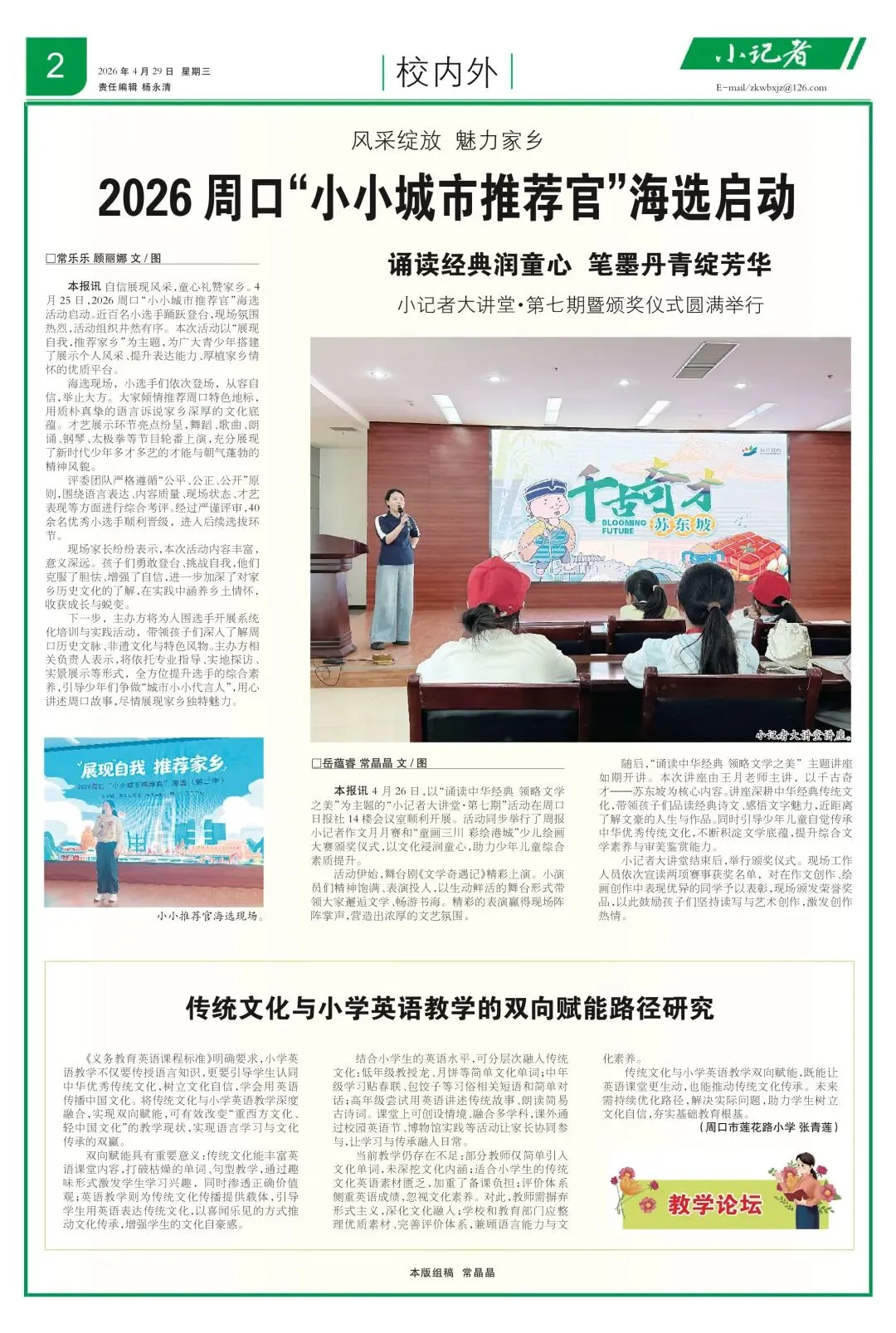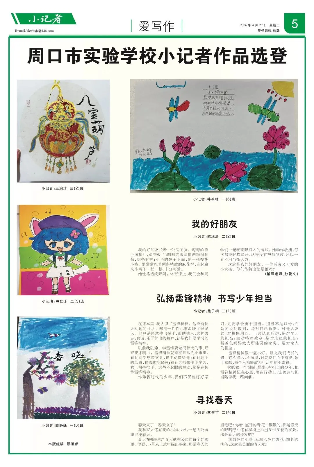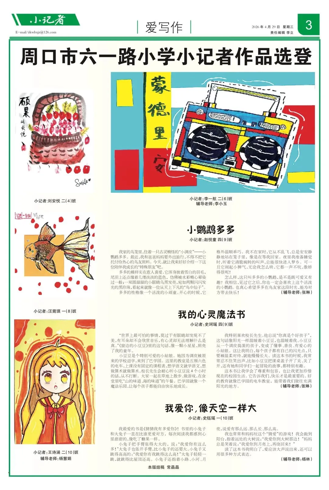 4月29日《小记者》电子版来啦!看看你的作品上榜没