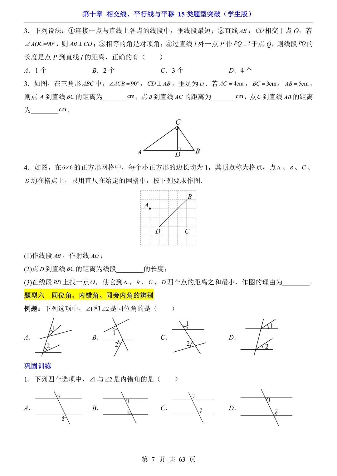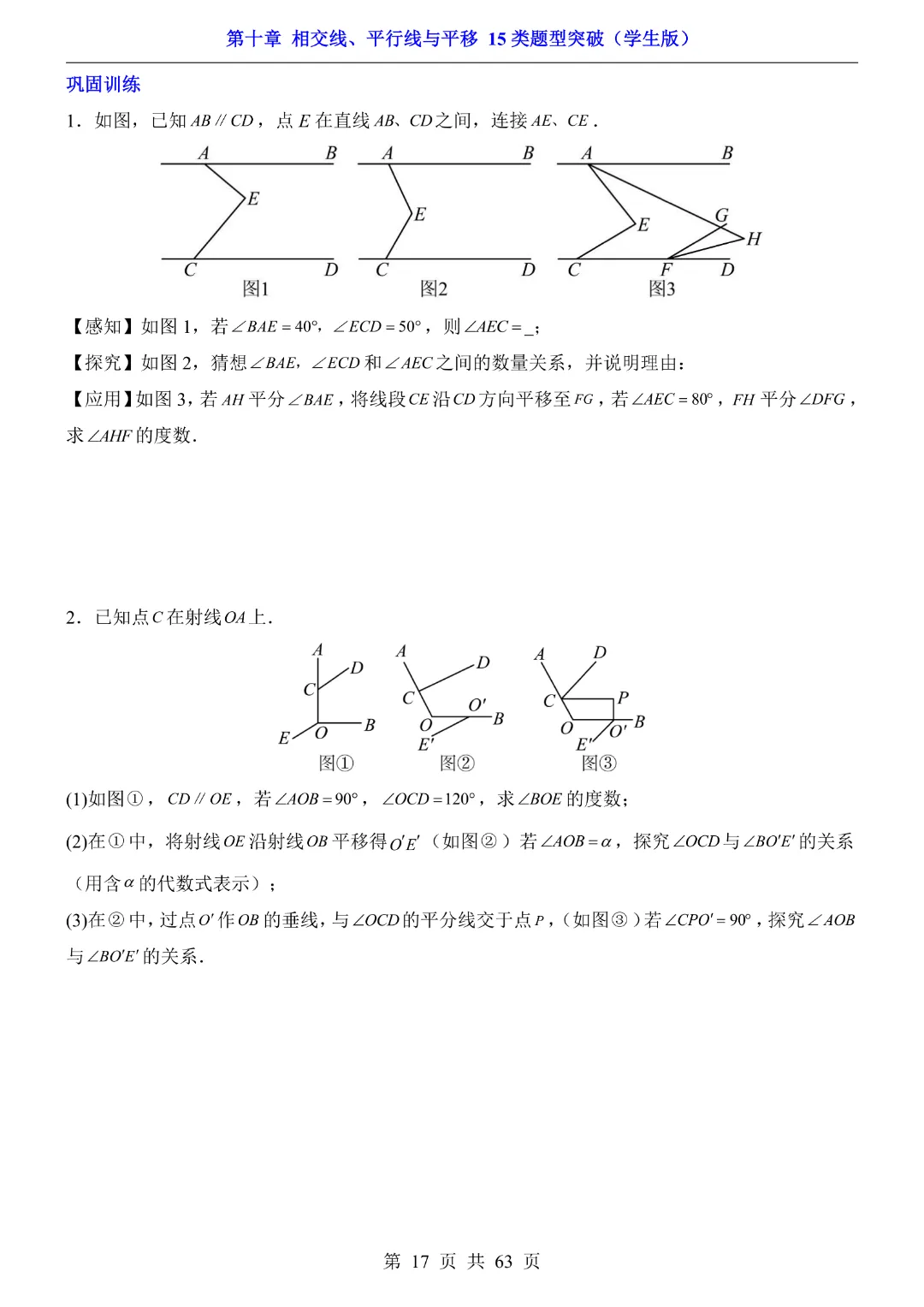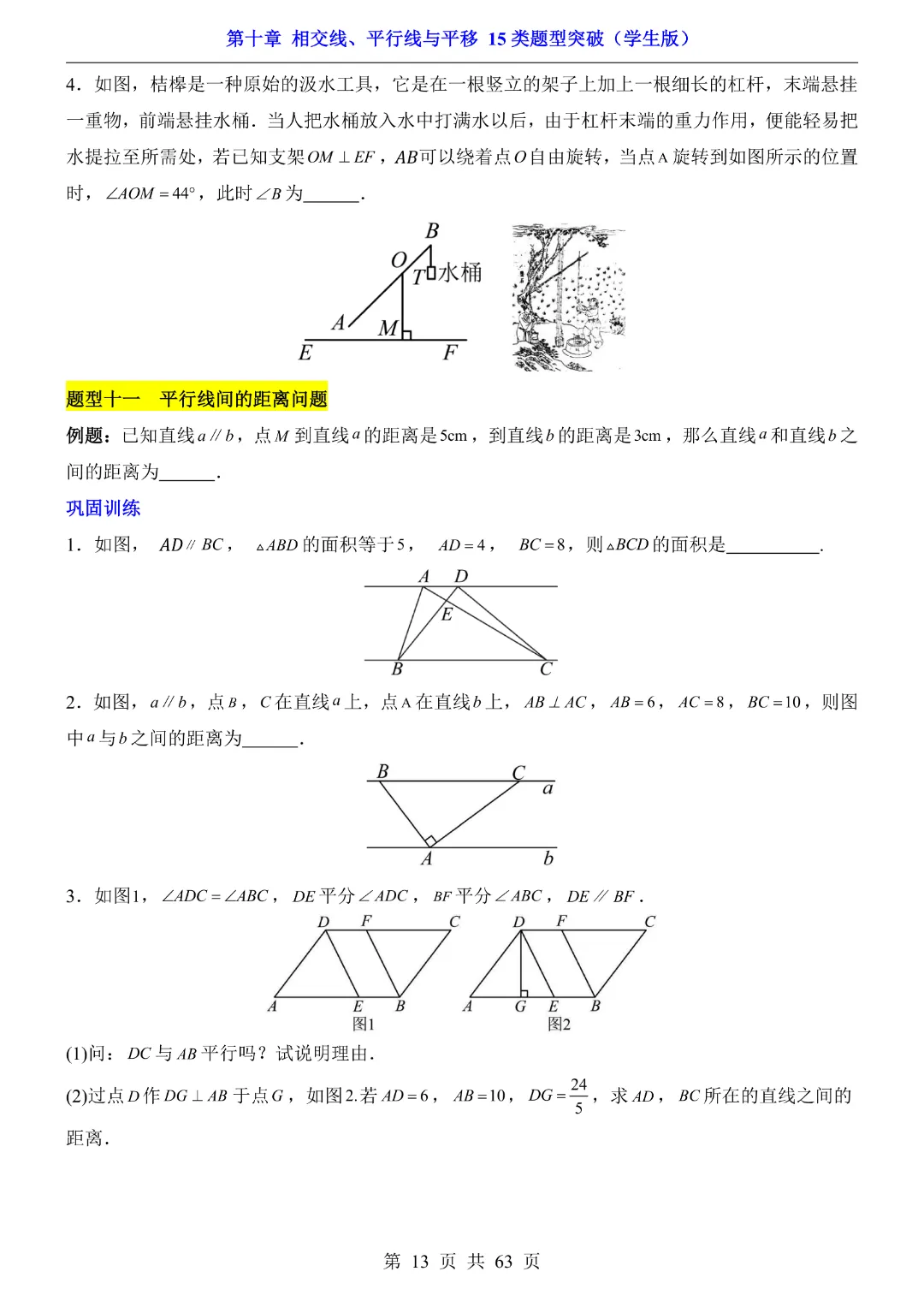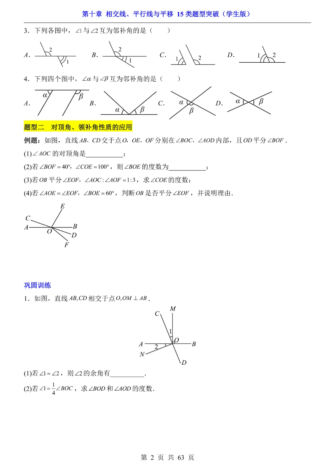 今天给大家分享的是:【七年级下册数学】【沪科版】第10章相交线、平行线与平移十五大类题型突破附带答案|完整高清电子版可打印