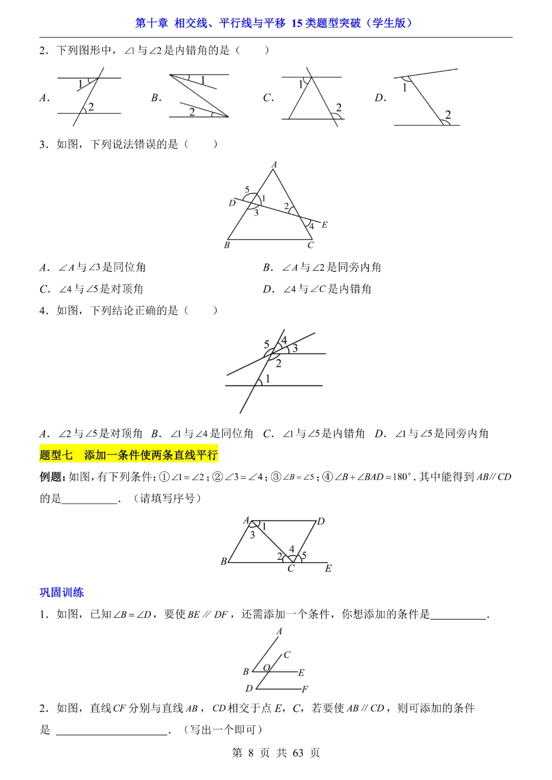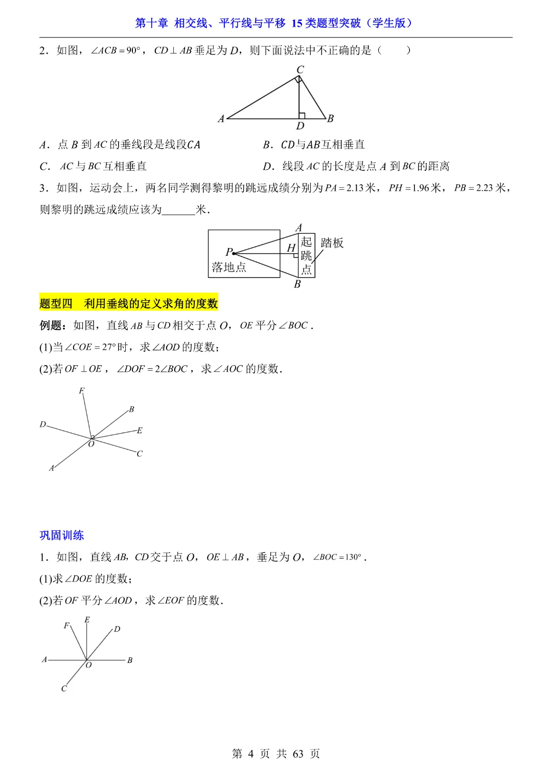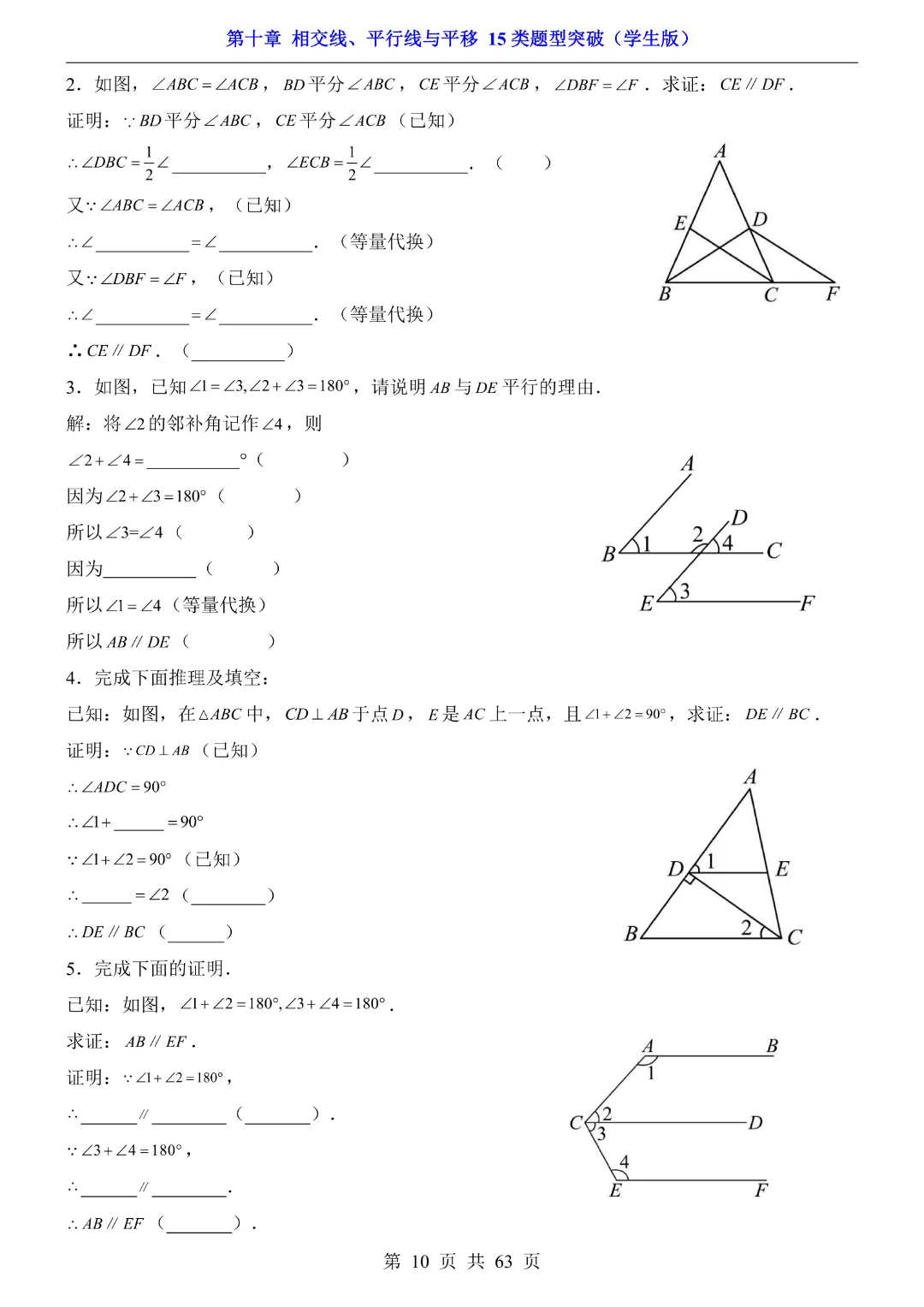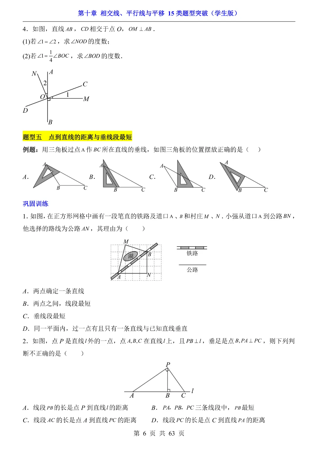 今天给大家分享的是:【七年级下册数学】【沪科版】第10章相交线、平行线与平移十五大类题型突破附带答案|完整高清电子版可打印