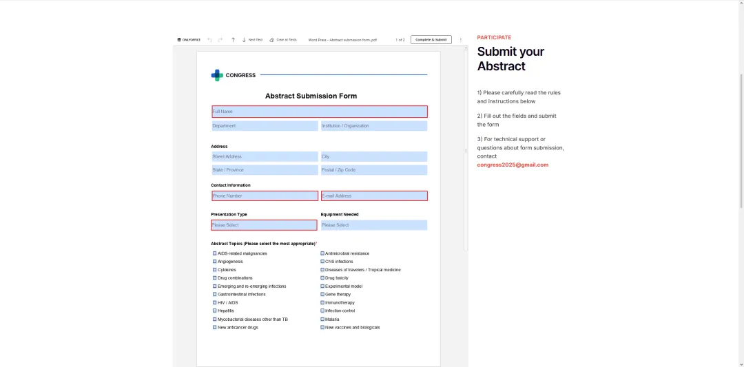 协作空间还允许您在网站页面中嵌入可填写的 PDF 表单。嵌入的表单是自动收集数据的简便方法,非常适合用于调查、问卷、注册流程和反馈收集。访客只需在其浏览器中填写必填字段,然后点击收集并提交按钮,所有数据将被收集到您协作空间中的一个单独电子表格中以供后续分析和处理。