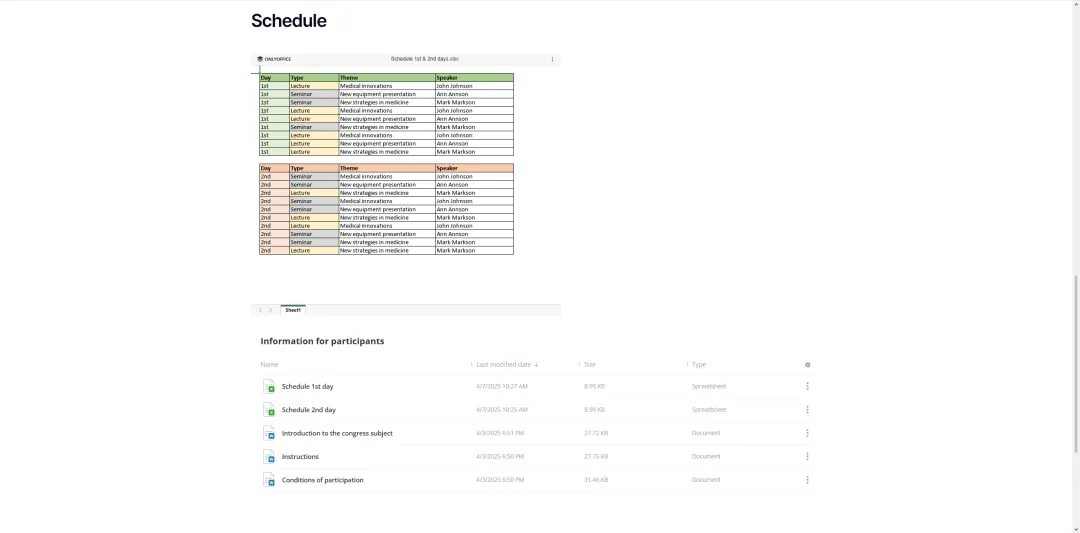 另一个有用的功能是协作空间房间可以直接集成到 WordPress 页面和帖子中。这意味着访客可以访问网站内的专用空间,查看各种文档、电子表格、演示文稿、表单、PDF 甚至媒体文件。这使得内容共享变得更加简单,为用户提供了更流畅的体验。
