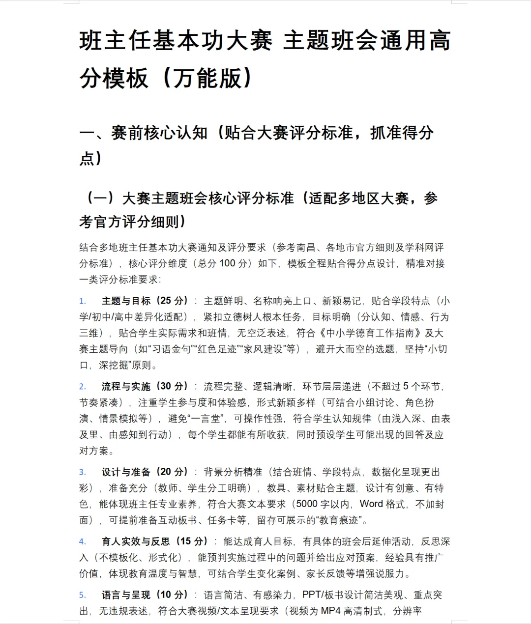 夜雨聆风 > > 办公文件 > 班主任基本功大赛 主题班会通用高分模版(万能板)