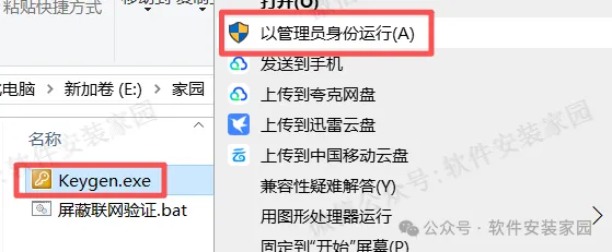 9、选中Keygen,鼠标右键选择“以管理员身份运行”