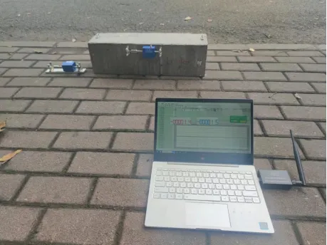 无线电阻应变计自带液晶屏显示。屏幕能直接显示应变读数、温度以及电量。应变计集成采集模块、无线模块及锂电池于一体,应用Zigbee无线组网技术,数据同步无线传输到笔记本电脑或采集平板,实现了无线自动化采集与存储的功能。