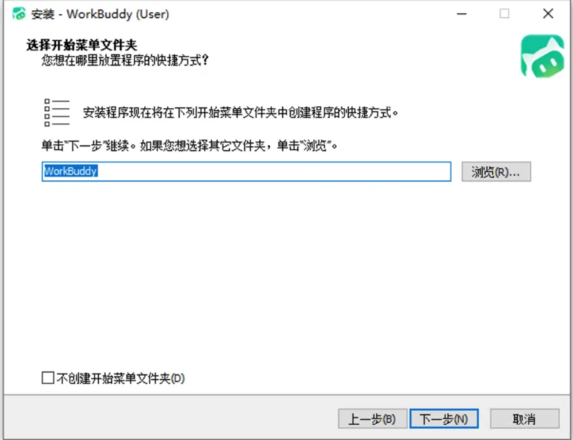 开始菜单文件夹保持默认,点击下一步。