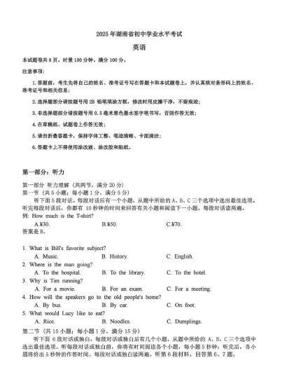 2025年全国中考真题答案(最新版)