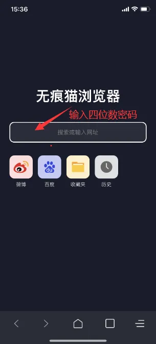 如果想藏的更深,可以藏在【无痕猫浏览器】里,表面看只是一个普通的浏览器,可以正常搜索查询,但如果在浏览器输入只有自己知道的密码,就成了一个跟真机隔离的隐私空间。