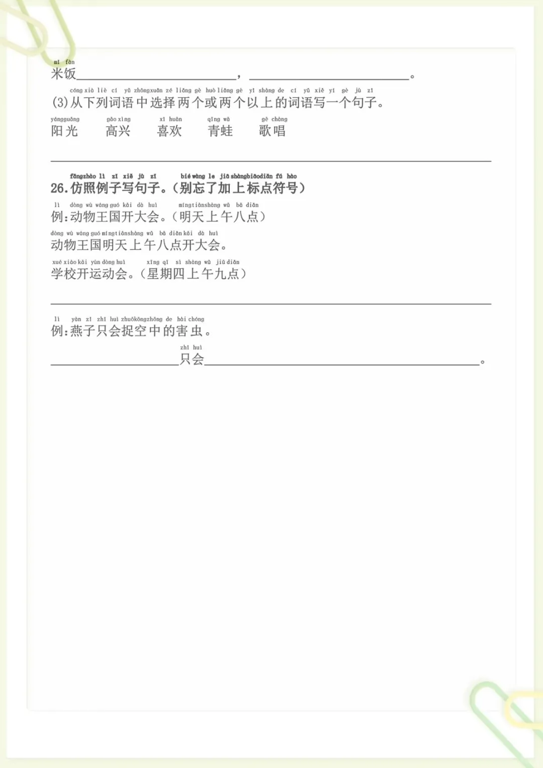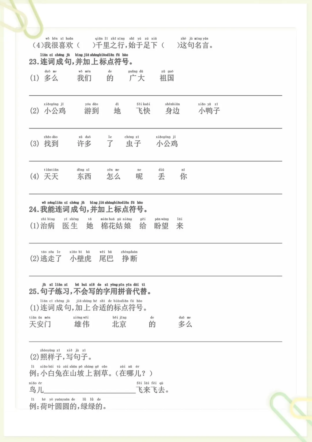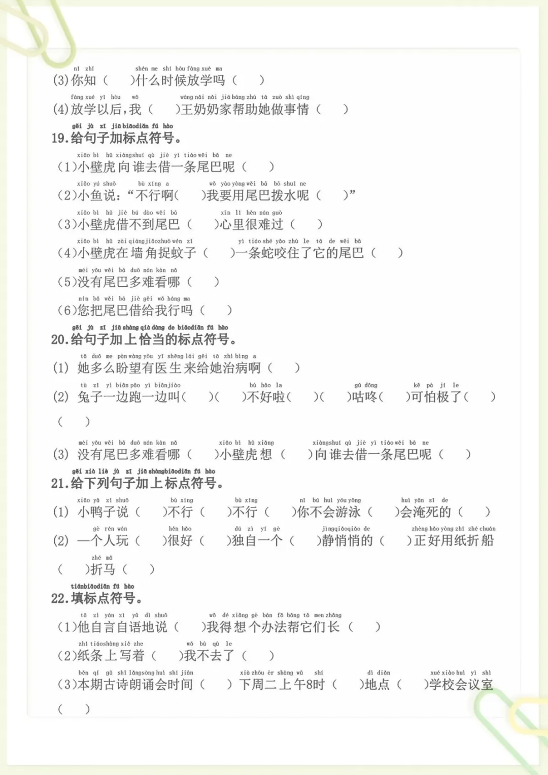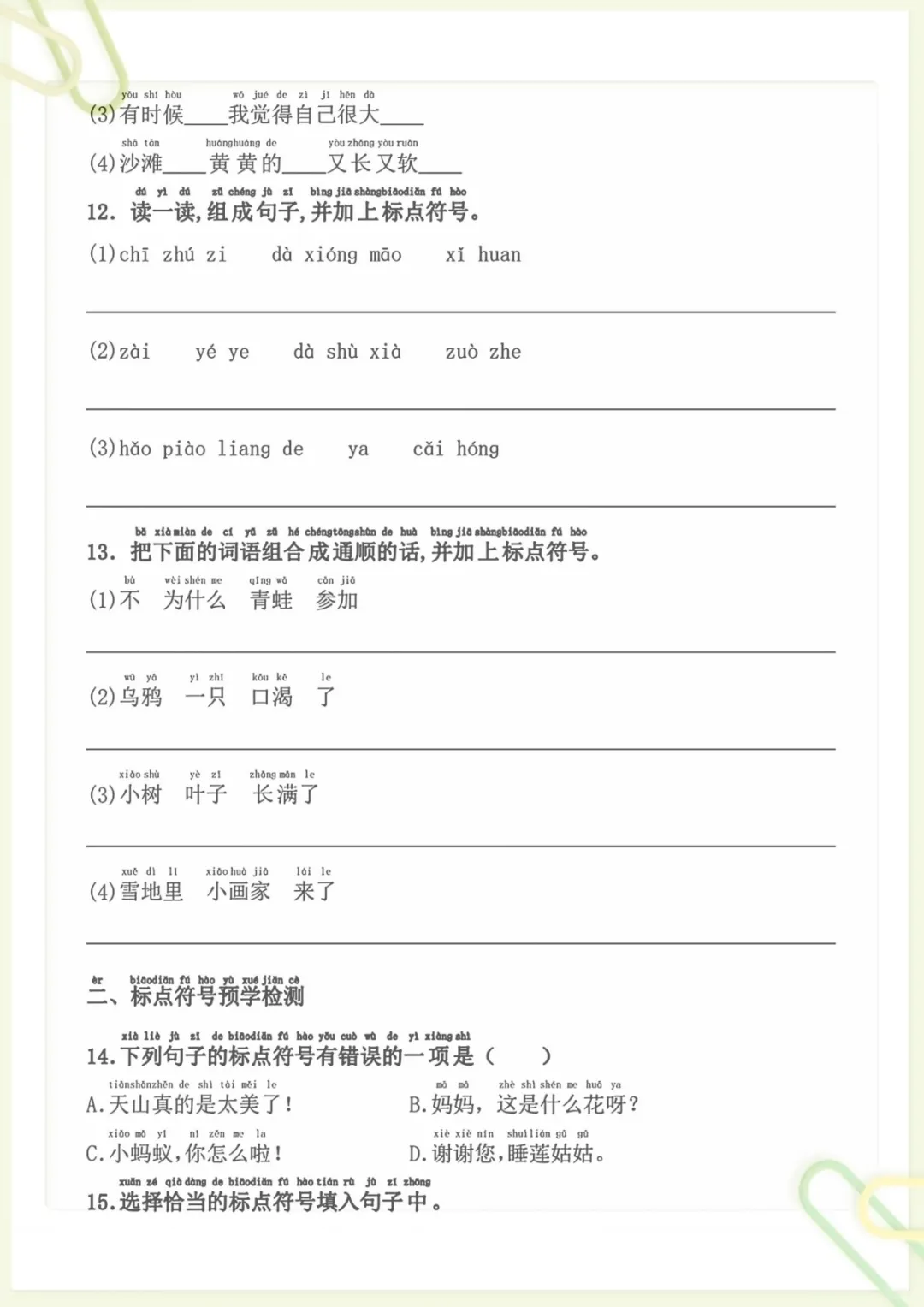 一年级下语文标题符号各种题型,共9页,电子版可下载可打印,这份专项练习围绕一年级下册语文中的标题符号运用展开,帮助孩子熟悉不同题型,巩固相关基础知识,进一步提升审题、辨析和规范书写能力,适合作为课后练习与专项强化使用。需要的家长可以及时下载打印出来,让孩子练一练,更扎实地掌握这部分内容。