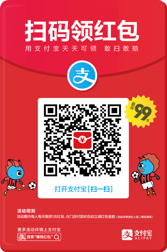 *复制后点击页面打开支付宝按钮唤起APP后粘粘搜索框领取红包或点击应用内长按二维码识别领红包*