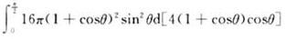 心形线r=4(1+cosθ),直线θ=0,θ=π/2所围图形绕极轴旋转而成旋转体的体积为()