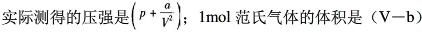 C : 实际测得的压强是p,V是1mol范氏气体的体积