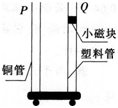 如图所示,上下开口、内壁光滑的铜管P和塑料管Q竖直放置。小磁块先后在两管中从相