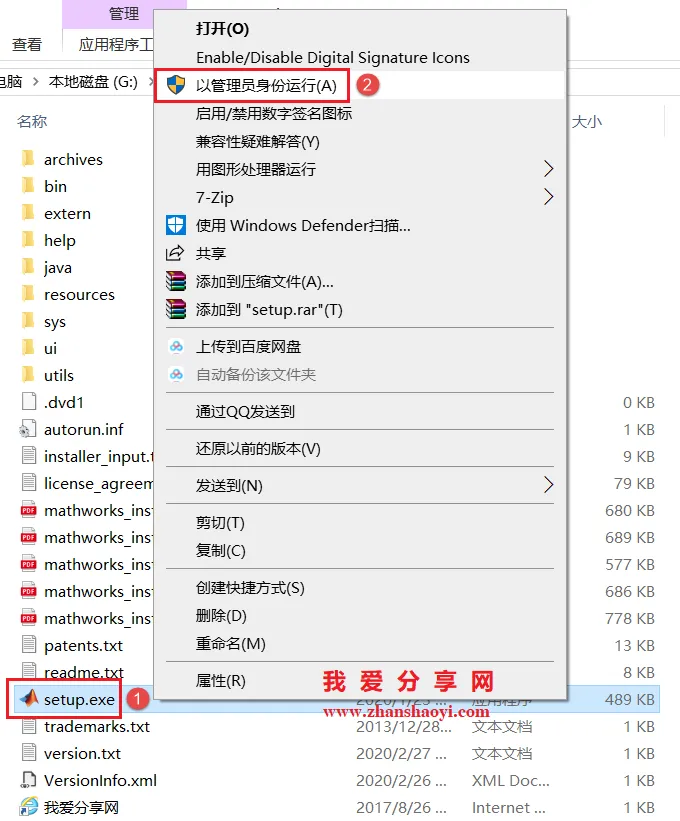 2.在文件夹找到setup.exe,鼠标右击选择【以管理员身份运行】